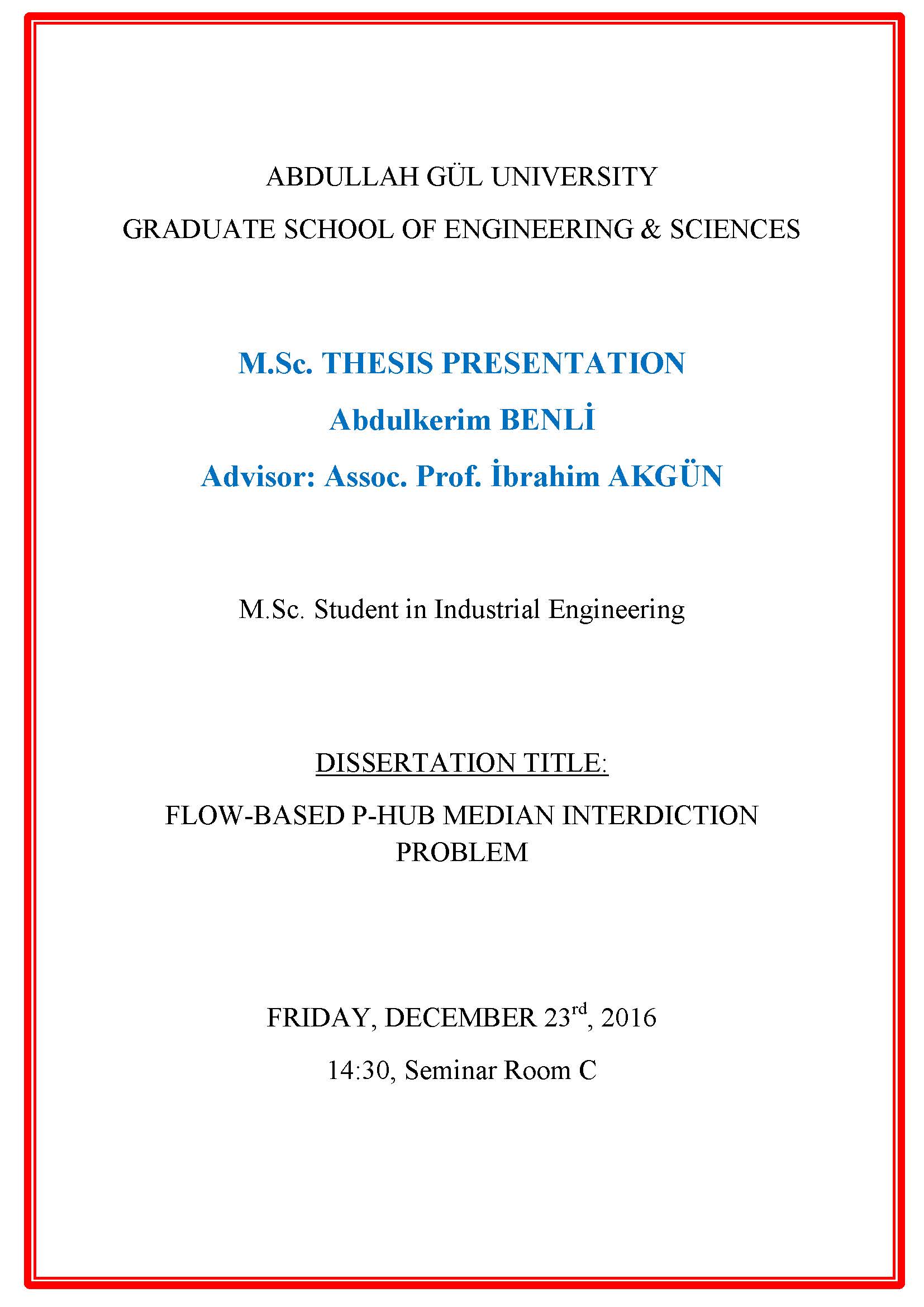 Industrial Engineering Master's Thesis Defense